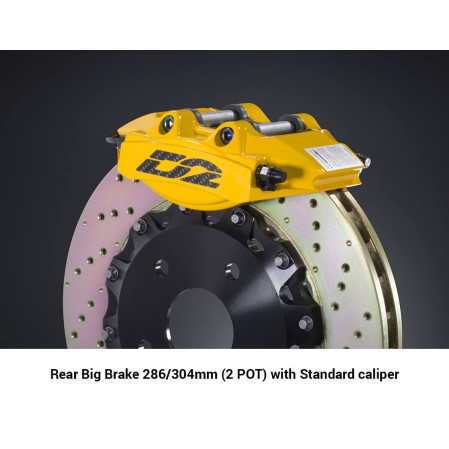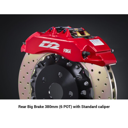 IMPORTANT NOTE: Please Check Original Equipment (OE) Handbrake function availability before purchasing for this kit. Our upgraded D2 brake kits are designed for optimum braking performance, resulting in reduced brake distances and better brake feel in performance vehicles. A Big Brake Kit (BBK), is also known as an Upgraded Brake Kit or Performance Brakes, is composed of bigger brake discs, brake pads and calipers. Braking performance is linked to the surface area the brake pads have to bite into, as well as the disc diameter and pad pressure. So larger pads and larger brake discs are perfect for shorter stopping distances. This increased surface area also helps with heat dissipation, as heat is the enemy of braking performance. The number of pots (or pistons) of the calipers will also play a role in term of pressure applied on the pads to make the contact as good as possible on the rotors. In order to fit the caliper on your original chassis, D2 Racing provides caliper brackets to position the calipers with your new braking system, making the perfect set up for your vehicle brake system. Calipers with dust cover: FIVE years limited warranty Calipers without dust cover: TWO years limited warranty (HOLLOW RACING & 8POT) Please ensure the brake kits fit your vehicle, in particular in relation to wheel clearance, prior to ordering. MacG Racing are not responsible for fitment issues of brake kits ordered. Fitting and suspension setup also available, for information contact us prior to order. Disc Diameter/Minimum Wheel Diameter Guide 286mm Disc – 15 inch wheel 304mm Disc – 16 inch wheel 330mm Disc – 17 inch wheel 356mm Disc – 18 inch wheel 380mm Disc – 19 inch wheel 400mm Disc – 20 inch wheel 421mm Disc – 21 inch wheel The caliper options are explained below Hollow calipers – These are forged monoblock aluminium calipers which are then CNC machined to reduce the weight and improve thermal efficiency over standard monoblock calipers, as used on high end race cars, to reduce brake temperatures. The discs are a two piece design with aluminium centre bell for reduced unsprung weight and better handling, as well as better thermal performance. Hollow Racing calipers – These are forged aluminium monoblock calipers with high levels of CNC machining for optimised weight reduction whilst maintaining incredible stiffness for the ultimate pedal feel and brake temperature reduction. They also feature high temperature seals and a specially constructed piston to reduce heat transfer into the fluid. Recommended for race and track use. Kits come with two brake calipers, two brake discs, street brake pads, stainless steel brake lines and associated mounting hardware. Race pads and custom colour calipers are available on all options including polished silver, gold and titanium. Please inquire for pricing and availability. Front brake kits are also available for most applications, and are designed to work in conjunction with the rear brake kits. All of our D2 Racing products can be fitted and set up in our Development Centre in South Derbyshire, 10 minutes from the world famous Donington Park circuit and 15 minutes from the M1 junction 24.